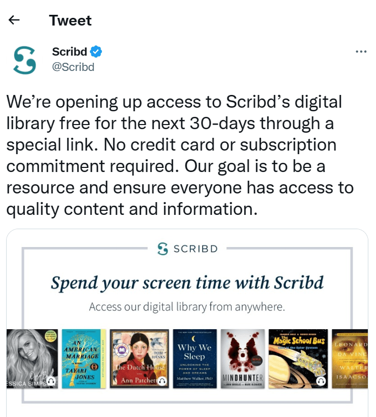 Thank you very much @Scribd! I adore the book subscription service, especially when it comes to audiobooks. #COVID19malaysia