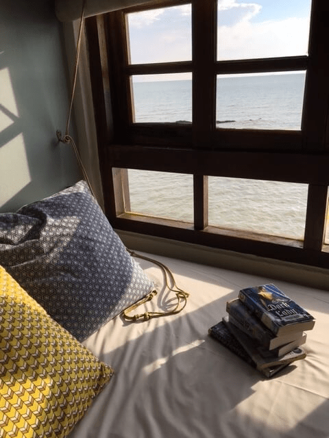 My favourite spot in my chalet is the sitting area next to the window. I spent many hours reading books on his daybed. I opened the windows and let the cool sea air in (it was raining). Gosh, must I leave?