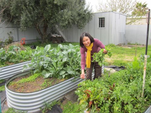 At the back of her house somewhere near Port Adelaide, chard, yummy coriander, chilli, silver beets, beetroot, and spring onion grow side by side. She has olive, lemon and kumquat trees too. Furthermore, her vegetables were huge – they were bursting with health. This, said Yin, is due to her giving them “light” (She’s a Sukyo Mahikari devotee) and talking to them like beloved friends, and the natural fertiliser made from recycled waste foods and “worm juice” produced by the worms in her worm farm she has in the garage.
